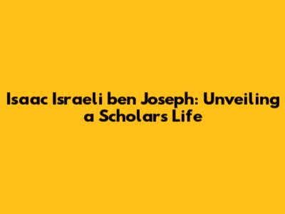 Isaac Israeli Ben Joseph: A Scholar's Life